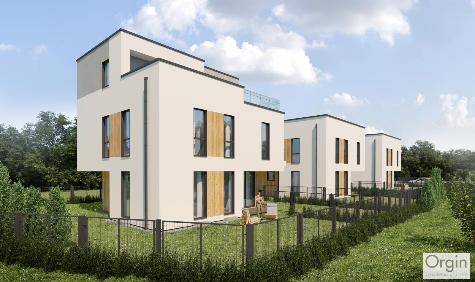 Budowa budynków dwulokalowych w zabudowie bliźniaczej -w sumie 4 lokale mieszkalne o powtarzalnym układzie, każdy z odrębnym wejściem i ogrodem przydomowym. Parter to pokój dzienny z aneksem kuchennym i wc, na piętrze 3 pokoje i łazienka, a na ostatniej kondygnacji sypialnia z łazienką i wyjściem na taras. Doskonała alternatywa dla mieszkania w bloku.